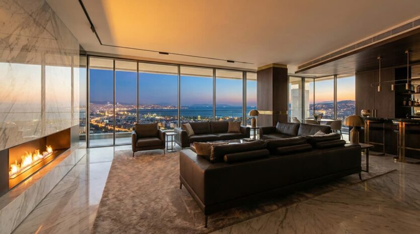 İzmir’in kalbi Bayraklı’da, gökdelenler bölgesinin en prestijli kulesinde yer alan bu penthouse, kesintisiz körfez manzarası sunuyor. 3.80 metre tavan yüksekliği, özel asansör girişi, VRF iklimlendirme ve A+ malzeme kalitesiyle kurumsal yöneticiler ve yatırımcılar için tasarlandı.